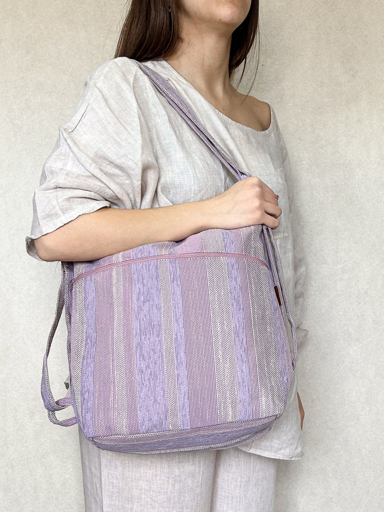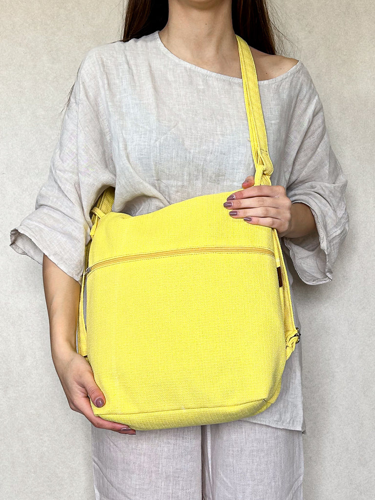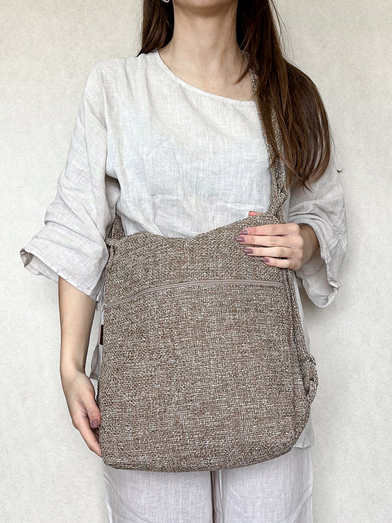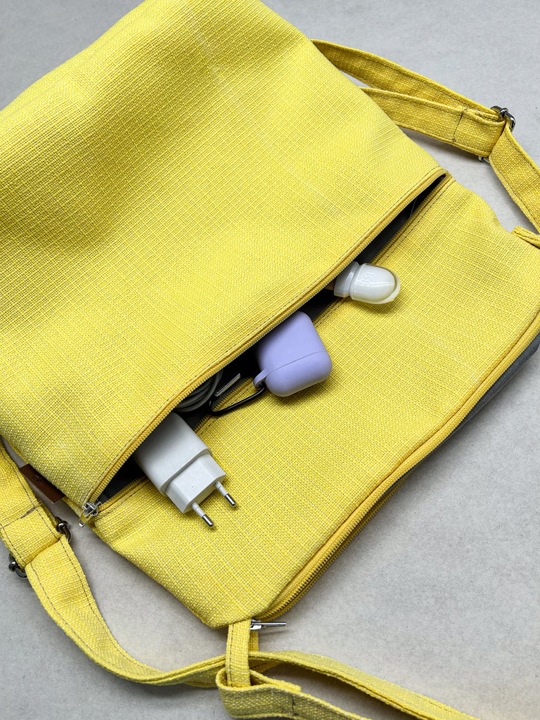 La borsa è lavabile a mano o a 30° C in lavatrice e lasciata asciugare all'aria aperta e al sole. È stirabile solo con vapore, sconsigliamo l’uso del ferro sul tessuto.