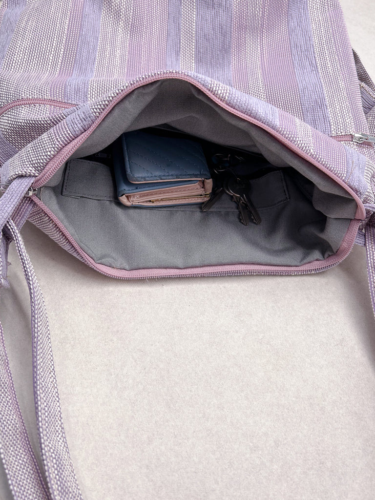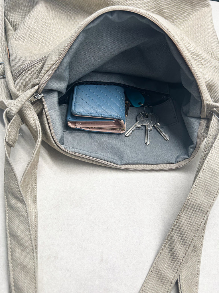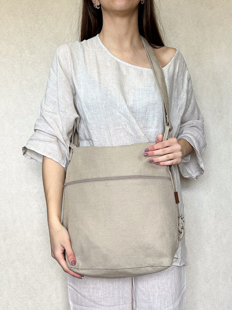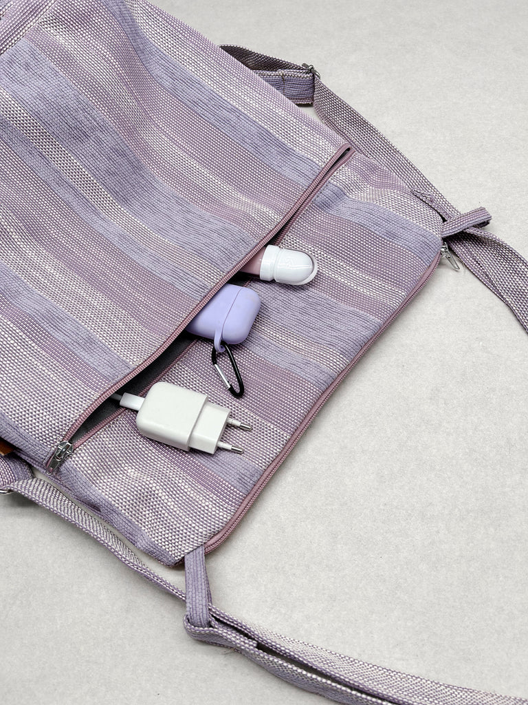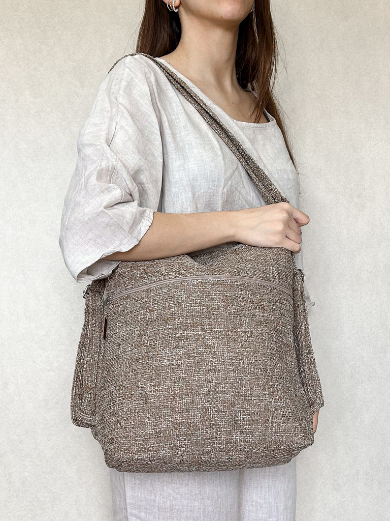 La borsa è lavabile a mano o a 30° C in lavatrice e lasciata asciugare all'aria aperta e al sole. È stirabile solo con vapore, sconsigliamo l’uso del ferro sul tessuto.