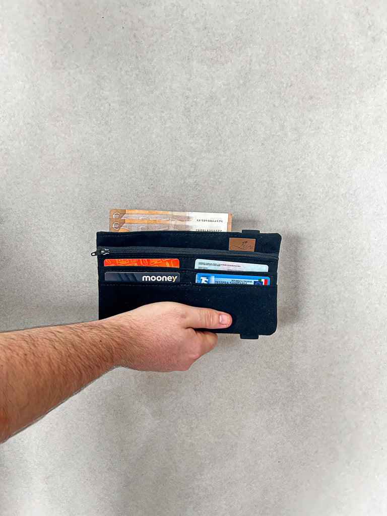 - Compartimento Separato: Per contanti e documenti di maggiori dimensioni.